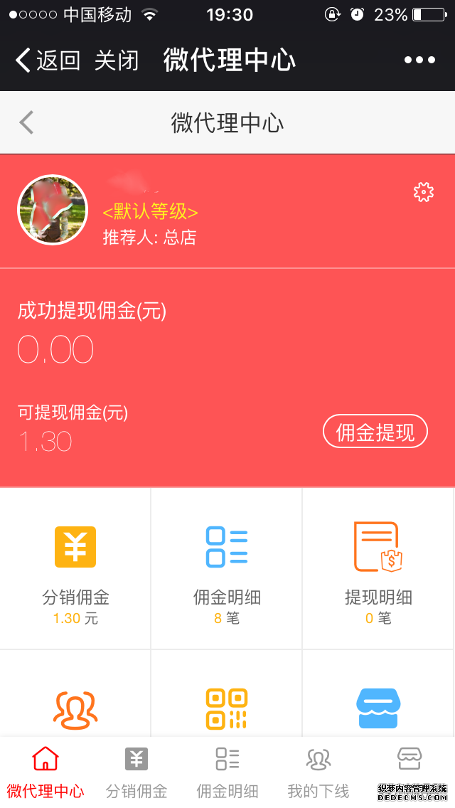 分销商管理直观显示会员ID、推荐人、姓名、手机号、等级、佣金、下线数量等;支持修改分销商真实姓名、电话、微信号、分销商等级
